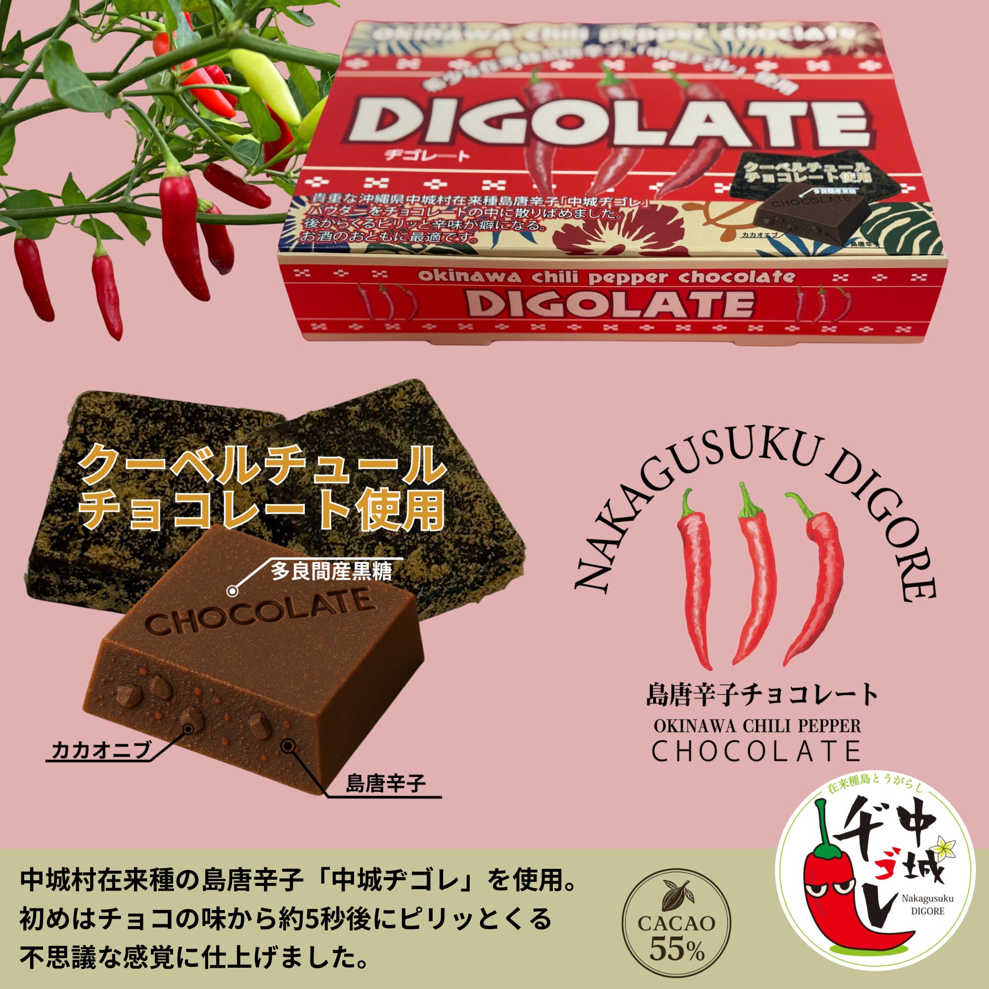 沖縄島唐辛子使用チョコレート・ヂゴレ―ト
